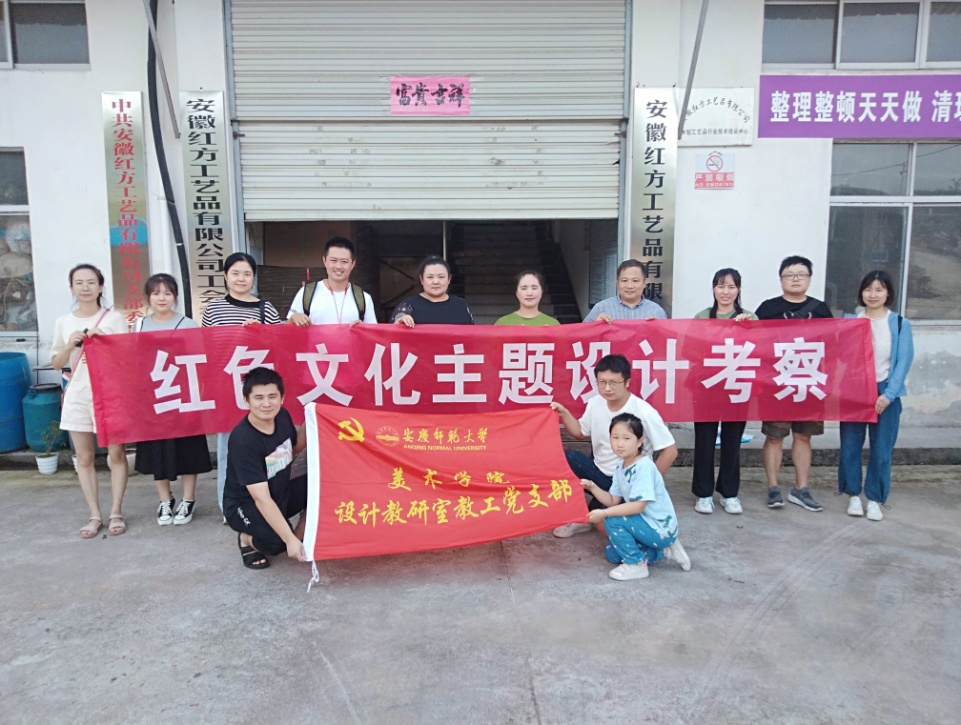 8月26日,美术学院设计系教工党支部党员一行来到安庆市岳西县响肠镇安徽红方工艺品有限公司进行红色文化主题设计考察。