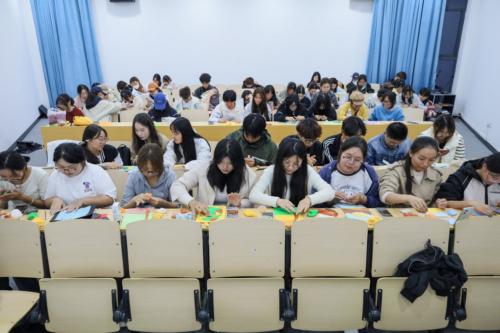 为让“解压”与“成长”并行,活动设置“专业赋能”环节,邀请学长学姐在色彩搭配、造型技巧上进行指导。“给新生讲秋日色调时,我们会把‘赭石+淡黄’的配比拆成‘先取掌心大的土块,再一点点加色’,避免他们因专业术语望而却步。”美术学专业2024(3)班的许悦说,指导时她分享自己大一捏坏三个作品的经历,让新生放下怕出错的心理负担,不再纠结作品是否完美,大胆放手创作。