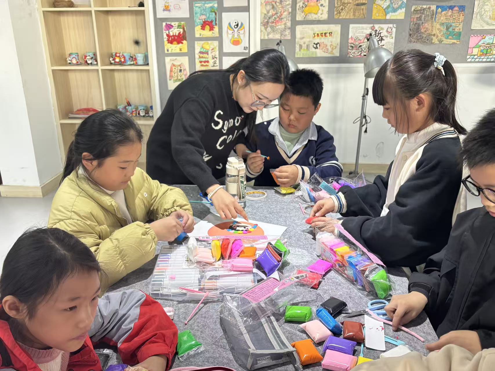 活动伊始,“盔帽文化展示区”便吸引了孩子们的目光。师范生化身“文化讲解员”,结合“文化密码卡”,为学生们讲解盔帽的历史渊源、工艺特点与象征意义。试戴体验环节更让现场气氛升温,孩子们戴上盔帽,模仿戏曲角色“亮相”,在欢声笑语中触摸传统工艺的温度。随后,三场分层教学同步开展:低年级课堂上,孩子们用画笔描绘出天马行空的盔帽纹样;中年级学生通过拼贴技法,让平面图案变身半立体作品;高年级则在师范生指导下,一步步完成简易盔帽的制作,成就感满满。