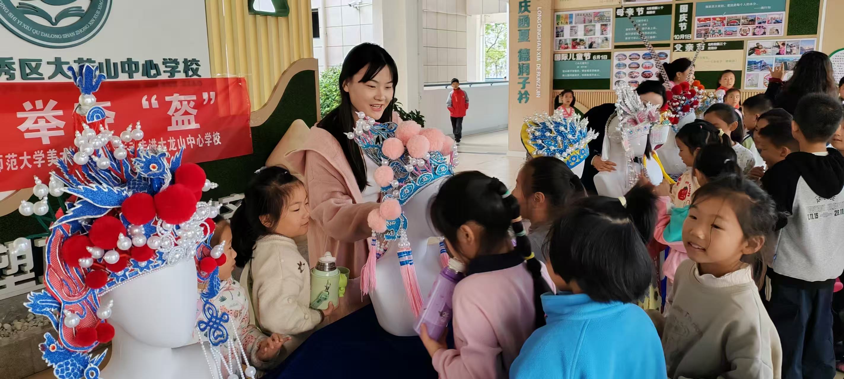 10月22日,安庆师范大学美术学(师范)专业师生携十余顶精美黄梅戏盔帽教具与分层课程包,走进大龙山中学校,开展“非遗盔帽进校园”主题美育活动。通过文化展示、沉浸式体验与分层教学实践,让传统工艺在青少年心中播下传承的种子,赢得该校师生一致好评。