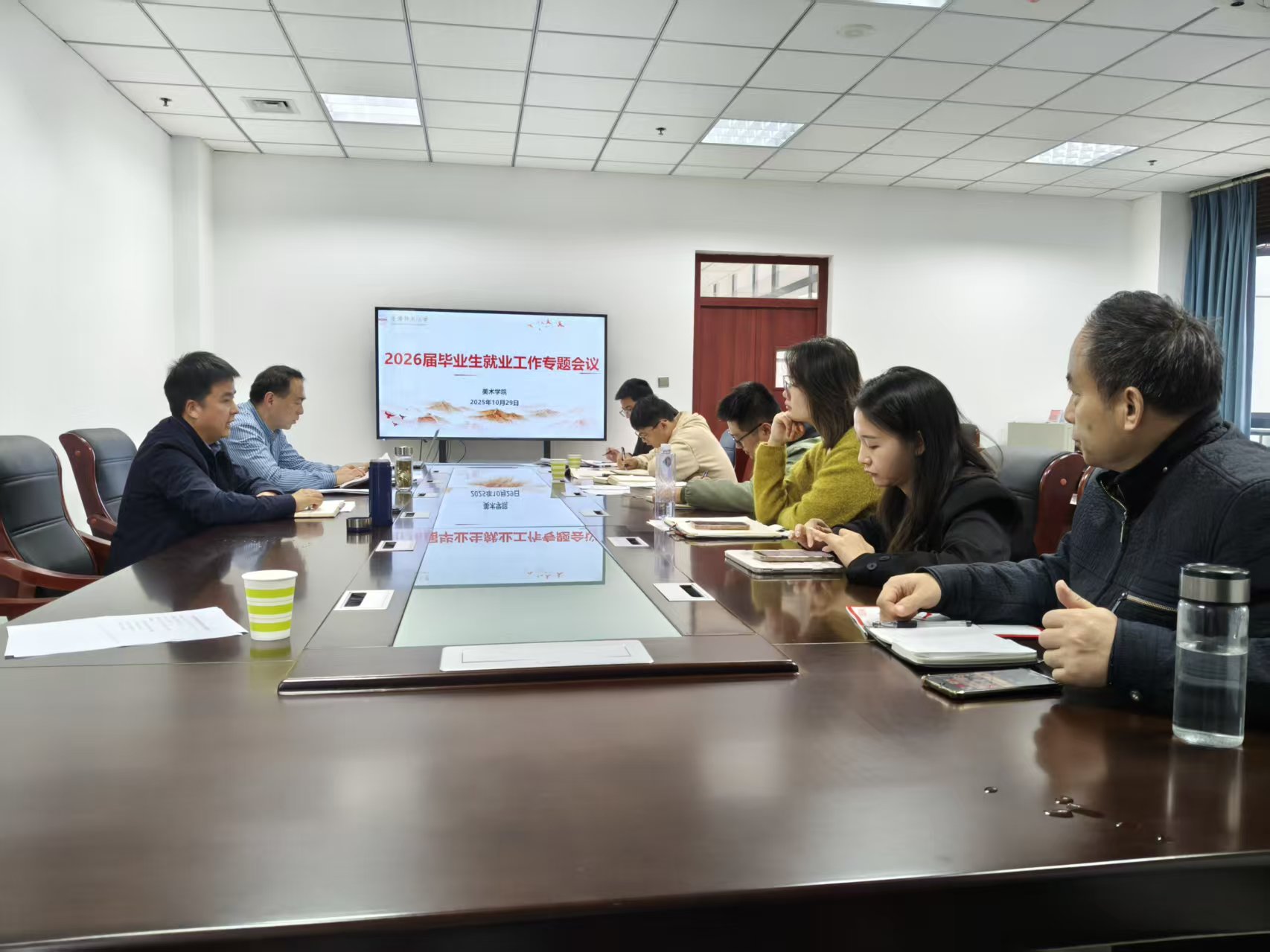 10月29日,美术学院召开2026届毕业生就业与征兵工作专题会议,美术学院领导班子全体成员、全体本科生辅导员、研究生辅导员、就业秘书等参加会议,会议由美术学院党委副书记金忠良主持。