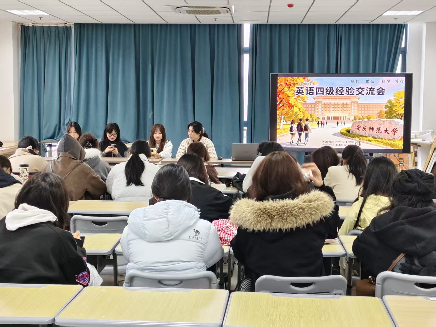 11月9日,美术学院学生会在新美术楼P210举办英语四级考试经验交流会,活动邀请了美术学院4名已经通过英语四级考试的同学进行经验交流和分享,2025级新生参加了此次活动。
