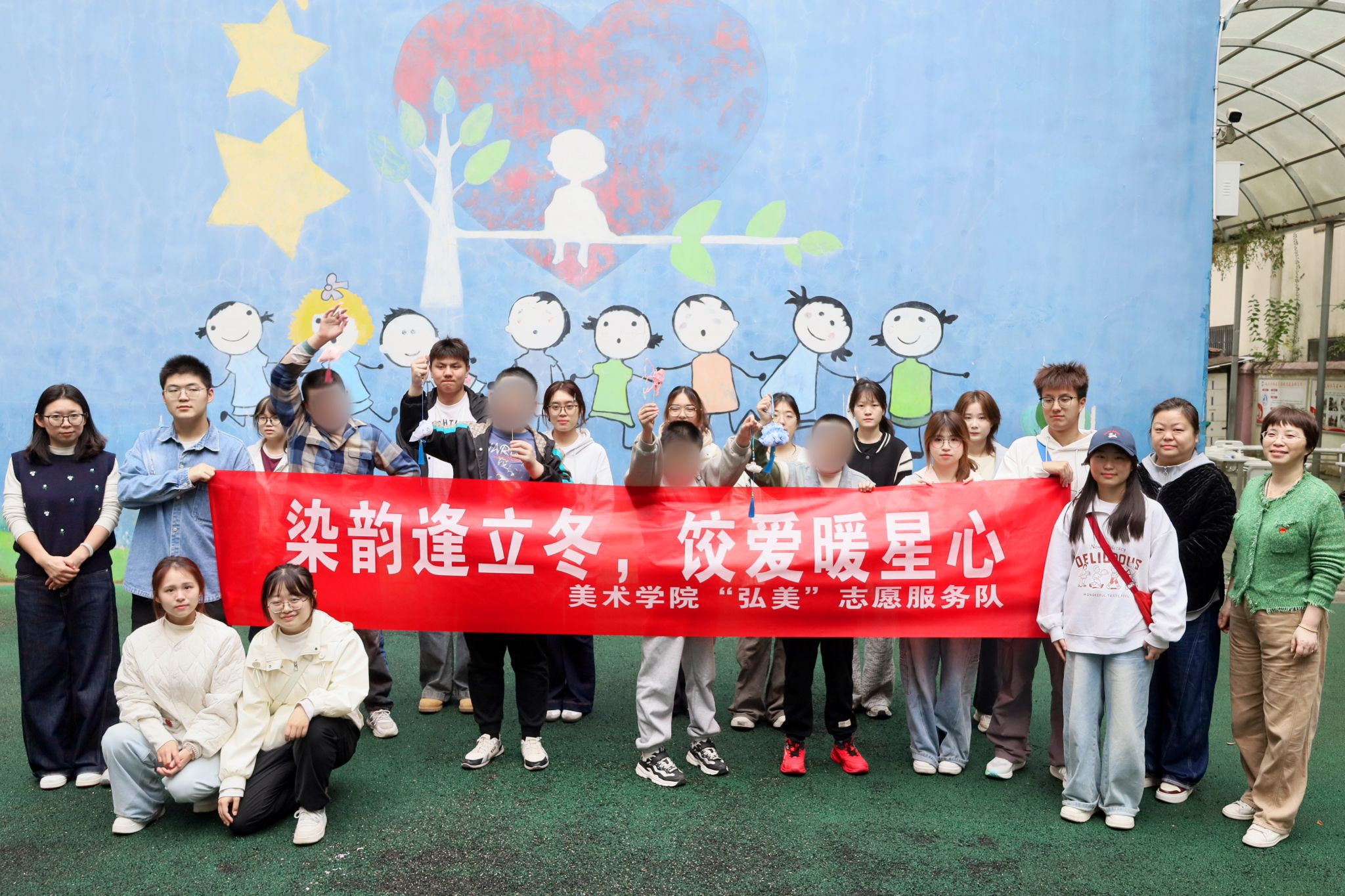 蓝白色的扎染布料勾勒着节气韵味,糖浆流转凝结着非遗温度,17名美术学院志愿者躬身陪伴在孩子们身旁,共同进行指尖创作。11月7日,立冬时节,美术学院“弘美”志愿服务队携手扎染俱乐部、大学生你好艺术家创意美工坊,走进安庆市迎江区起点特殊教育学校,以非遗技艺为媒、以节气民俗为引、以公益爱心为桥,让十至十几岁的孩子们在沉浸式体验中感受传统文化魅力,在温情互动中收获冬日暖意。