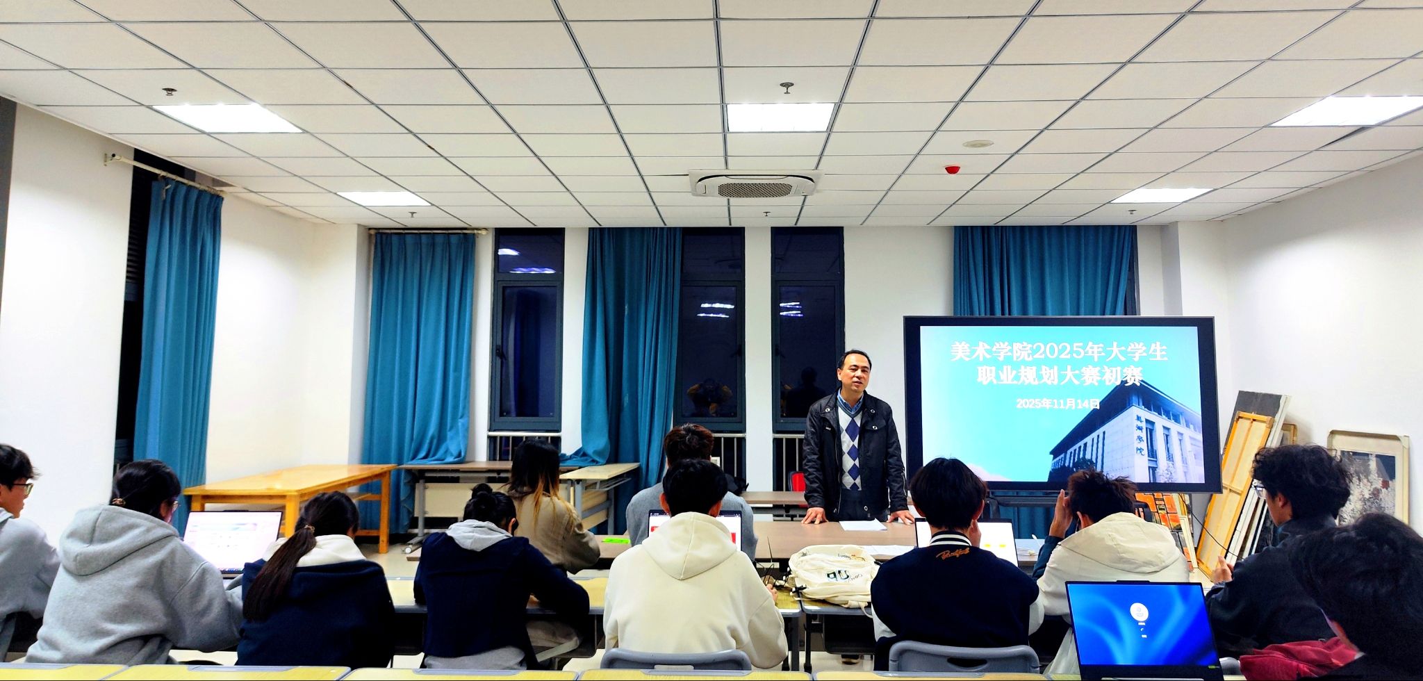 11月14日,美术学院举办2025年大学生职业规划大赛院级初赛,美术学院党委副书记金忠良出席比赛现场,美术学院辅导员、就业秘书和学生会成员担任了评委,经各班级推荐,8名同学参加了美术学院初赛。
