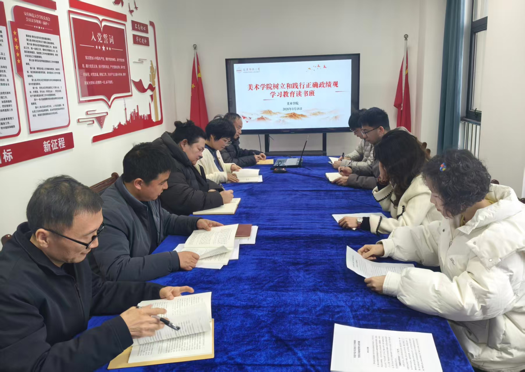 美术学院于3月16日至19日举办树立和践行正确政绩观学习教育读书班。读书班由学院党委书记张辉主持,学院班子成员、党委委员、各党支部书记参加学习。